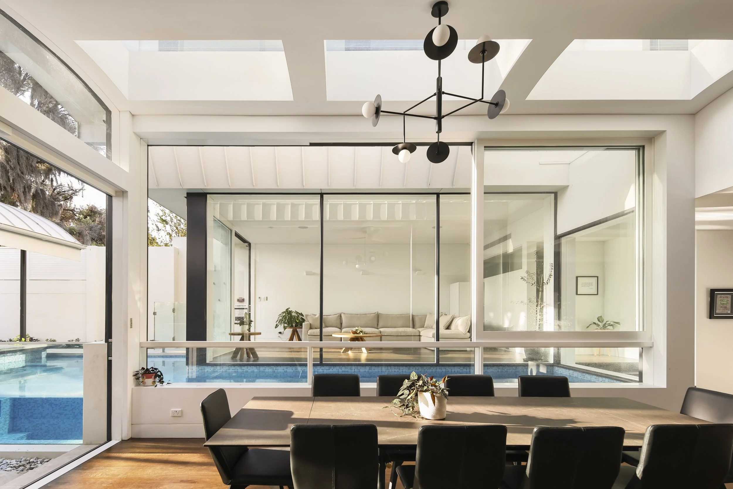 Externally, the home respects its urban setting by retaining the heritage façade along Union Street, while a contemporary extension opens to the rear lane. This balance between past and present defines the project: a celebration of texture, geometry, and craft that expands on the architectural narrative begun with the first Union Street home.
